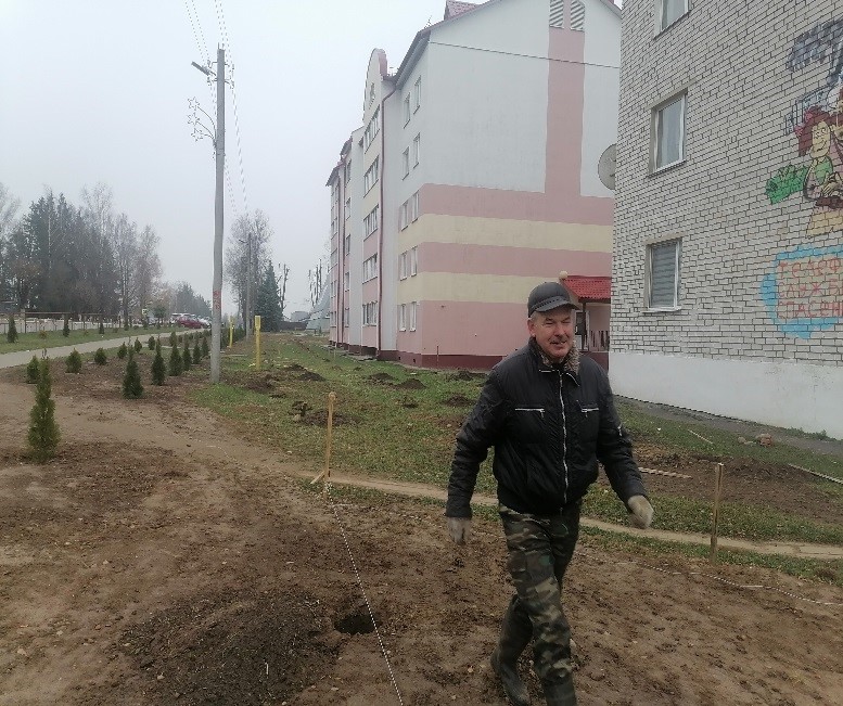 Государственным учреждением «Центр по обеспечению деятельности бюджетных организаций Логойского района» проводится озеленение территории одними из лучших сортов- «Туя Gold»,«Туя Smaragd», сосна «Горная».