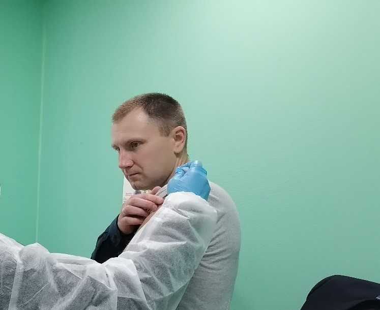 Управляющий государственным учреждением «Центр по обеспечению  деятельности бюджетных организаций Логойского района» С.А. Шорец был первым кому провели вакцинацию.